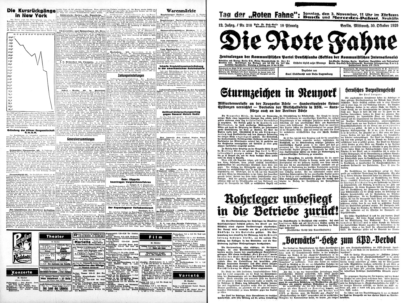 “Krah na Wall Street-u! Crni utorak u Americi! Panična prodaja dionica slomila tržište! New York je pomahnitao! Gubici se broje u bilijunima!” Crni utorak, krah tržišta dionica u SAD-u, dogodio se 29. listopada 1929. godine samo nekoliko tjedana nakon premijere predstave “Cijankalij §218” u Berlinu. Nakon kraha, uslijedila je višegodišnja kriza u cijelom svijetu — Velika depresija. Američke banke obustavile su isplatu kredita Njemačkoj. Njemačka više nije mogla plaćati ratne reparacije niti pokretati gospodarstvo. Njemačka ekonomija se slomila.